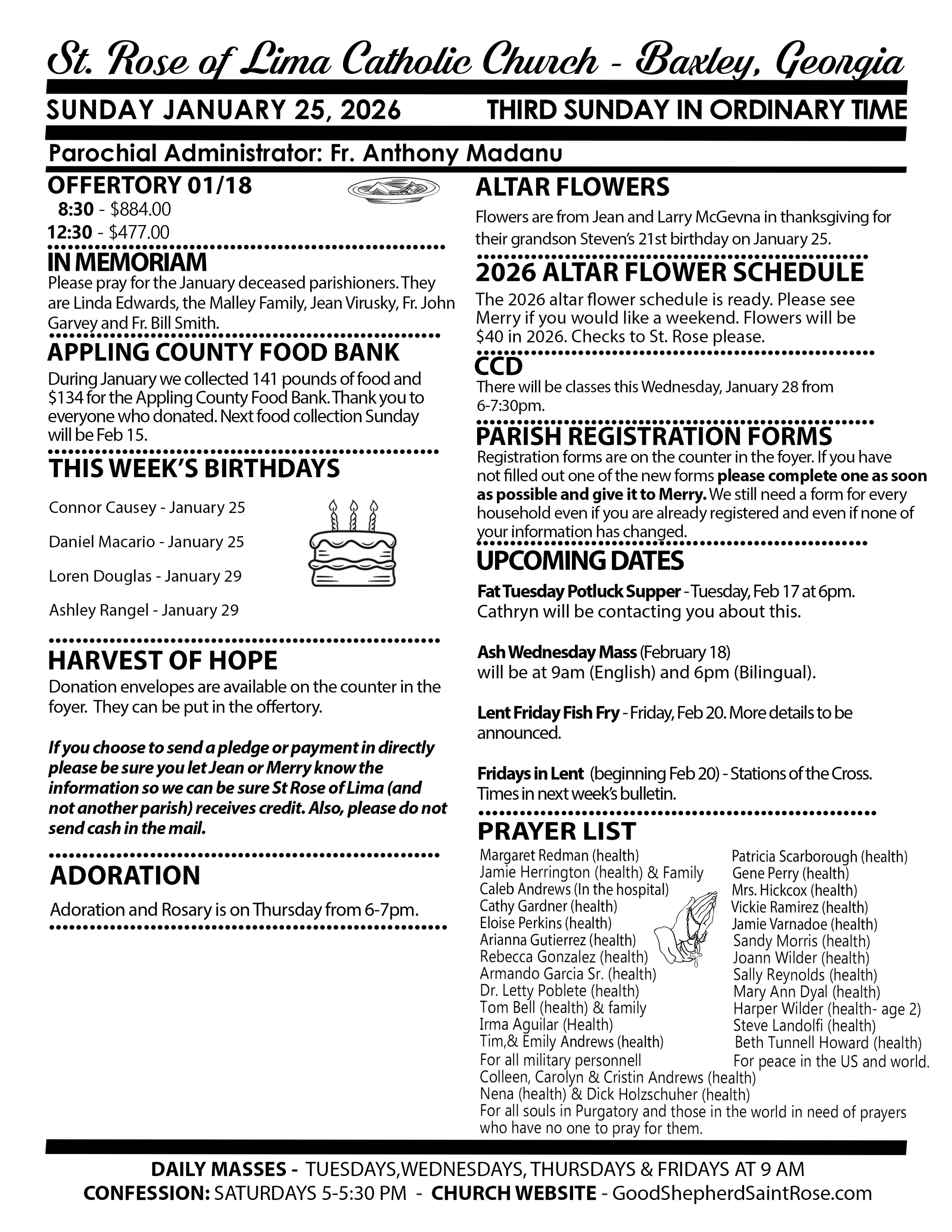 HISTORY OF ST. ROSE OF LIMA BAXLEY
