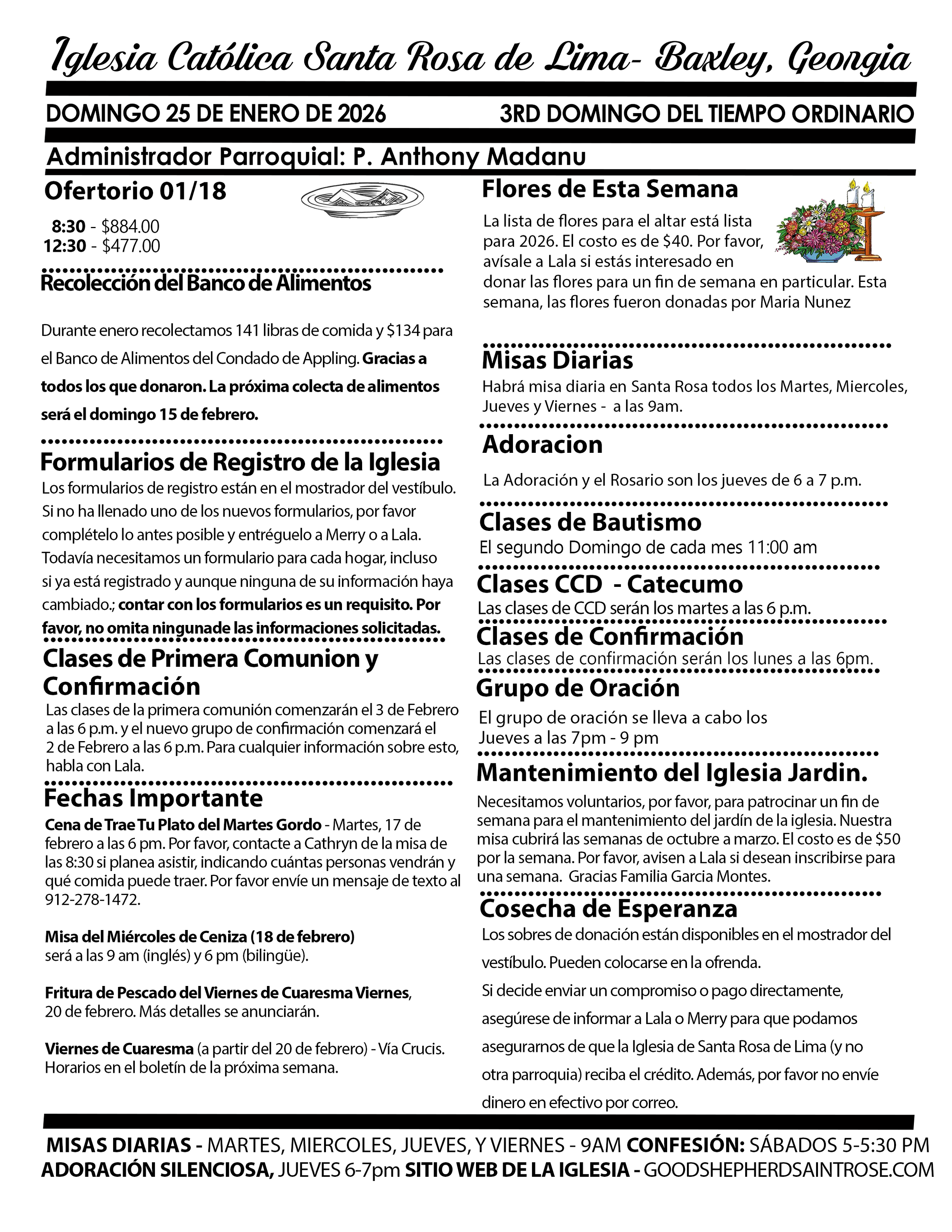 HISTORY OF ST. ROSE OF LIMA BAXLEY